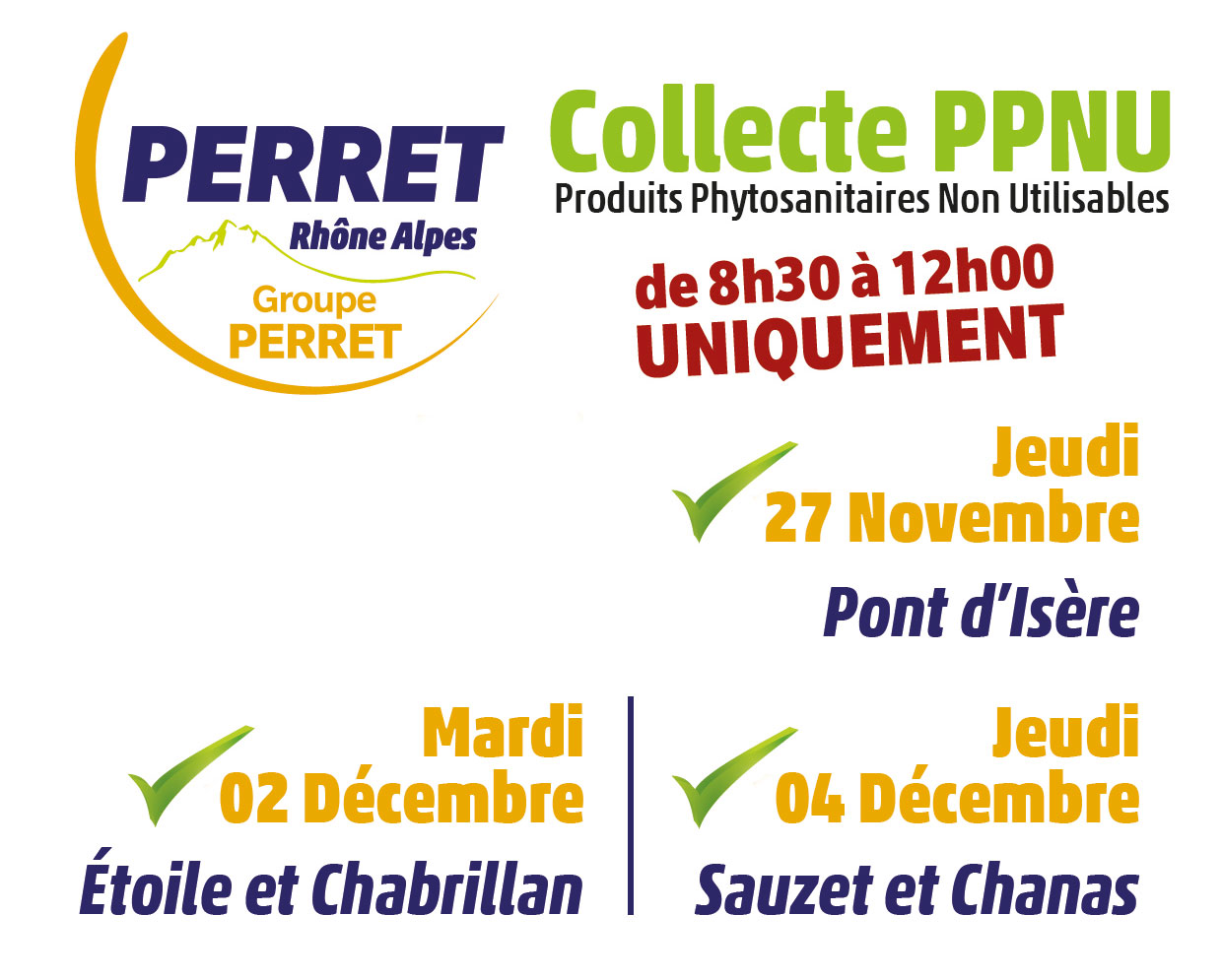 A vos agendas ! Mardi 12 et Jeudi 14 Décembre collectes des PPNU à Chabrillan, Etoile sur Rhône, Chanas et Sauzet