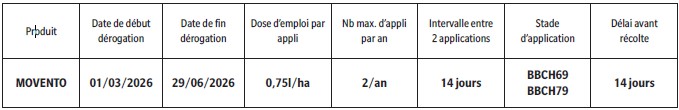 MOVENTO : dérogation d’usage pour la spécialité MOVENTO à base de spirotétramate pour la lutte contre cochenilles sur cassissiers, myrtilliers et groseilliers. AMM valable du 01/03/2026 au 29/06/2026